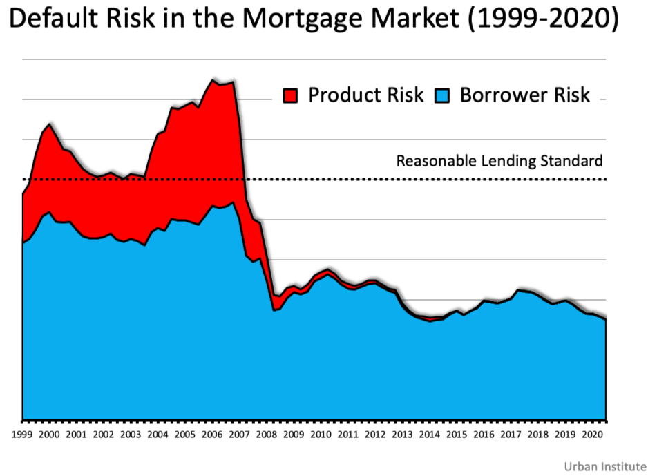 “Significant space remains to safely expand the credit box. If the current default risk was doubled across all channels, risk would still be well within the pre-crisis standard of 12.5 percent from 2001 to 2003 for the whole mortgage market.”
