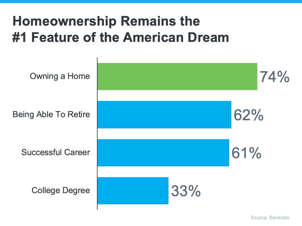 A recent survey from Bankrate asked respondents which achievements they feel most embody the American Dream. The responses prove owning a home is still important to so many Americans today (see graph below):