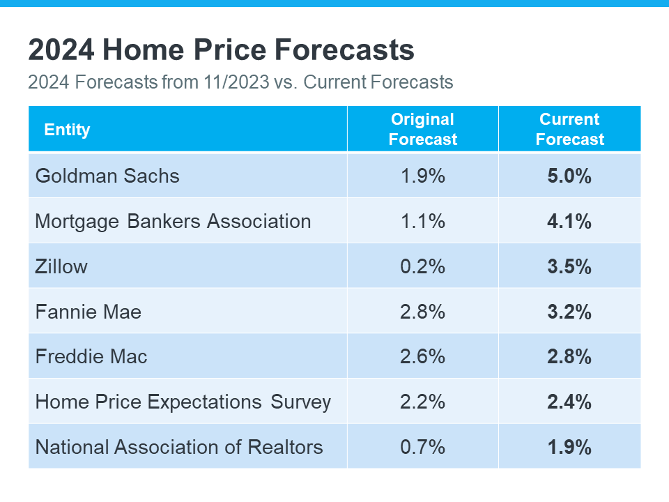 Over the past few months, experts have revised their 2024 home price forecasts based on the latest data and market signals, and they’re even more confident prices will rise, not fall.