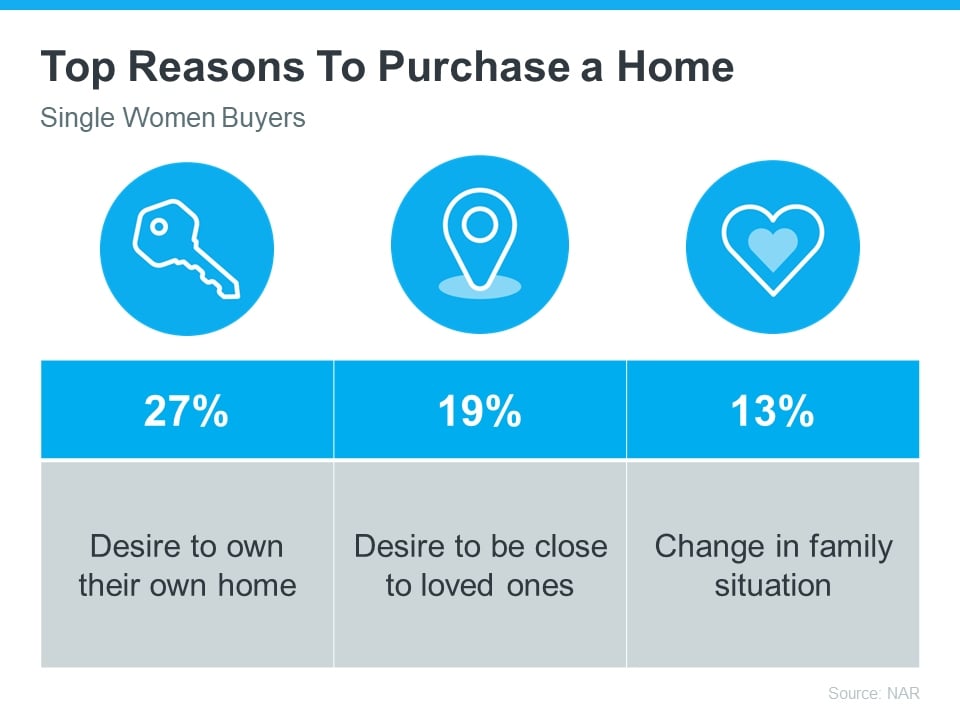 In addition to financial reasons, personal motivations also drive single women to buy homes. A recent report from the National Association of Realtors® (NAR) highlights the top reasons single women are making this move today: