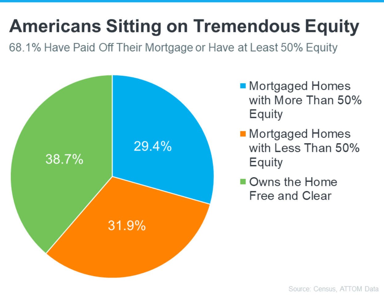 If you’ve owned your home for a while, you’ve likely built up some equity – and you may not even realize how much. Based on data from the U.S. Census Bureau and ATTOM, the majority of Americans have a substantial amount of equity right now (see graph below):