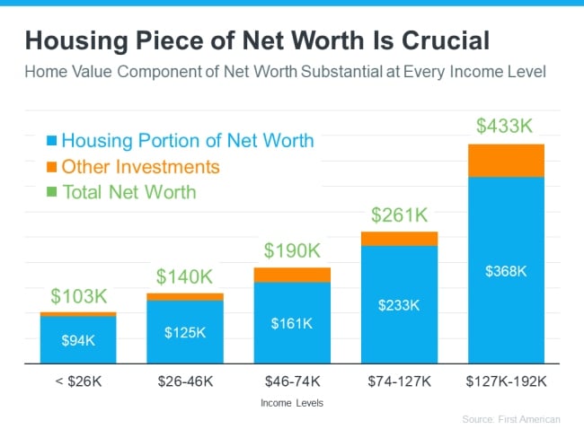 In other words, home equity does more to build the average household’s wealth than anything else. And according to data from First American, this holds true across different income levels (see graph below):