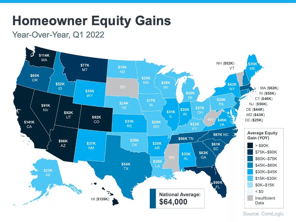 Basically, because your home value has likely climbed so much, your equity has increased too. According to the latest Homeowner Equity Insights from CoreLogic, the average homeowner’s equity has grown by $64,000 over the last 12 months.