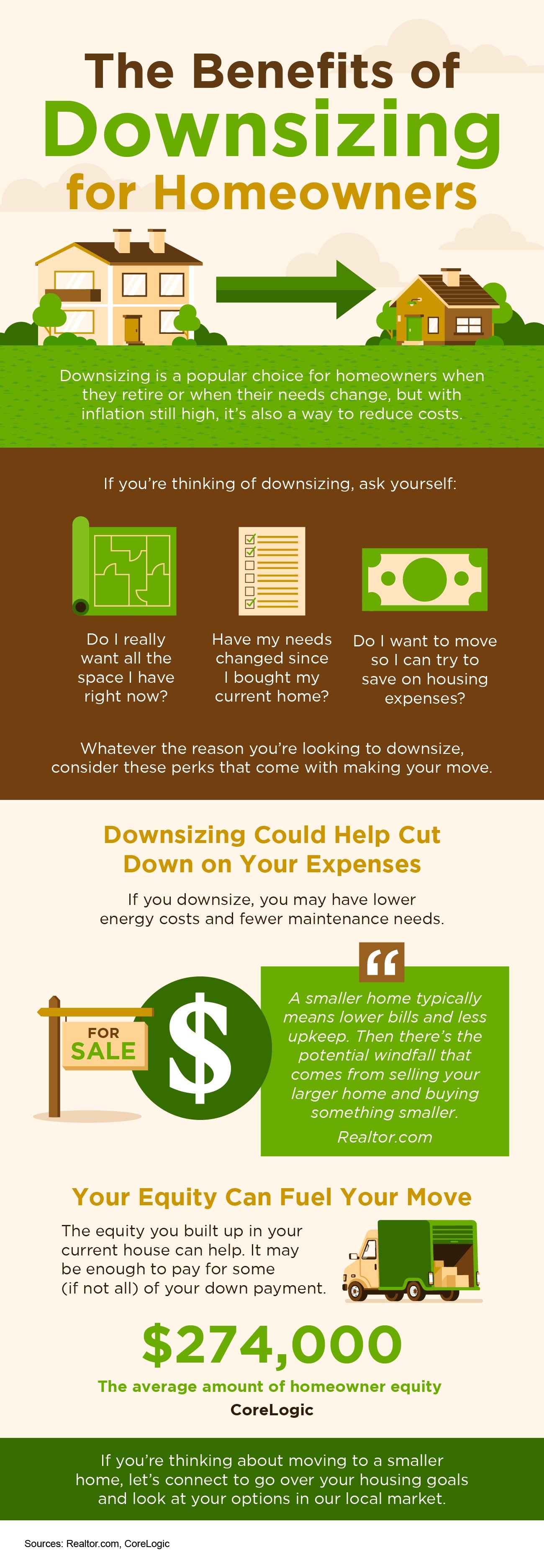 If you’re thinking about moving to a smaller home, connect with a real estate professional to go over your housing goals and look at your options in the local market.