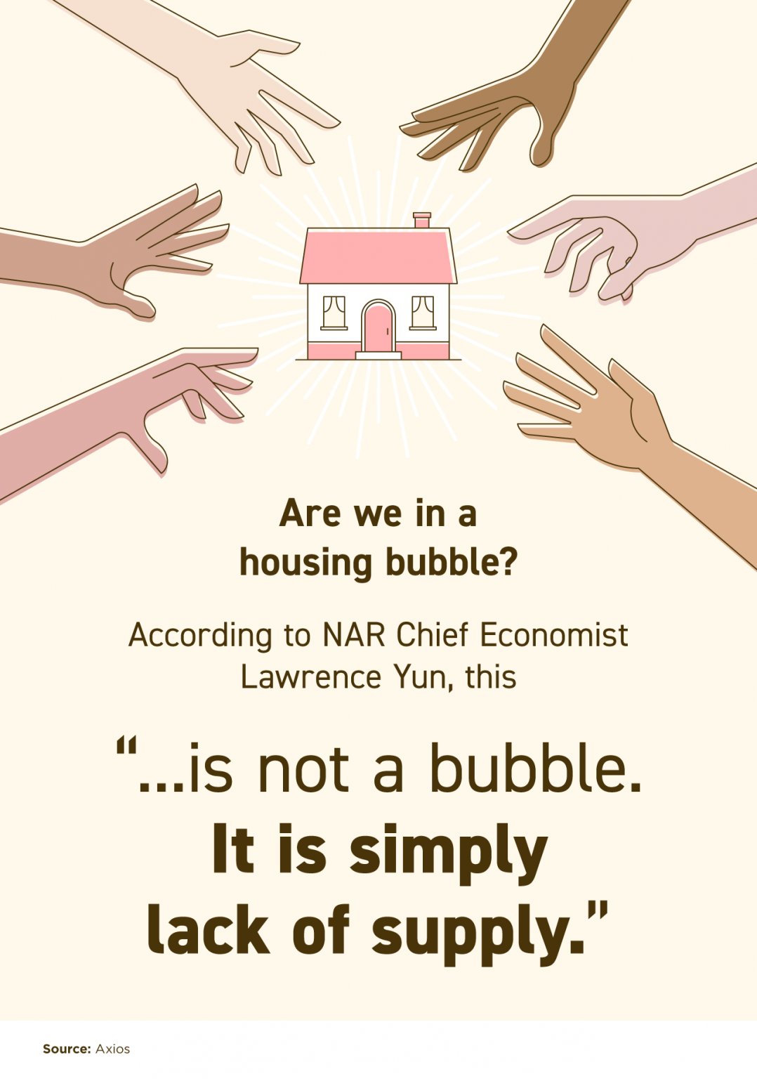 When addressing whether or not today’s high buyer competition and rising home prices are evidence of a housing bubble, Yun said that this “is not a bubble. It is simply lack of supply.”