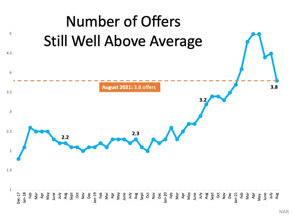 Again, it’s important to compare today’s market to trends from recent years. Currently, the average number of offers per listing is higher than 39 of the previous 45 months. That means the likelihood of a bidding war on your home is still high. And the number of offers your house receives can have a major influence on the final sale price.