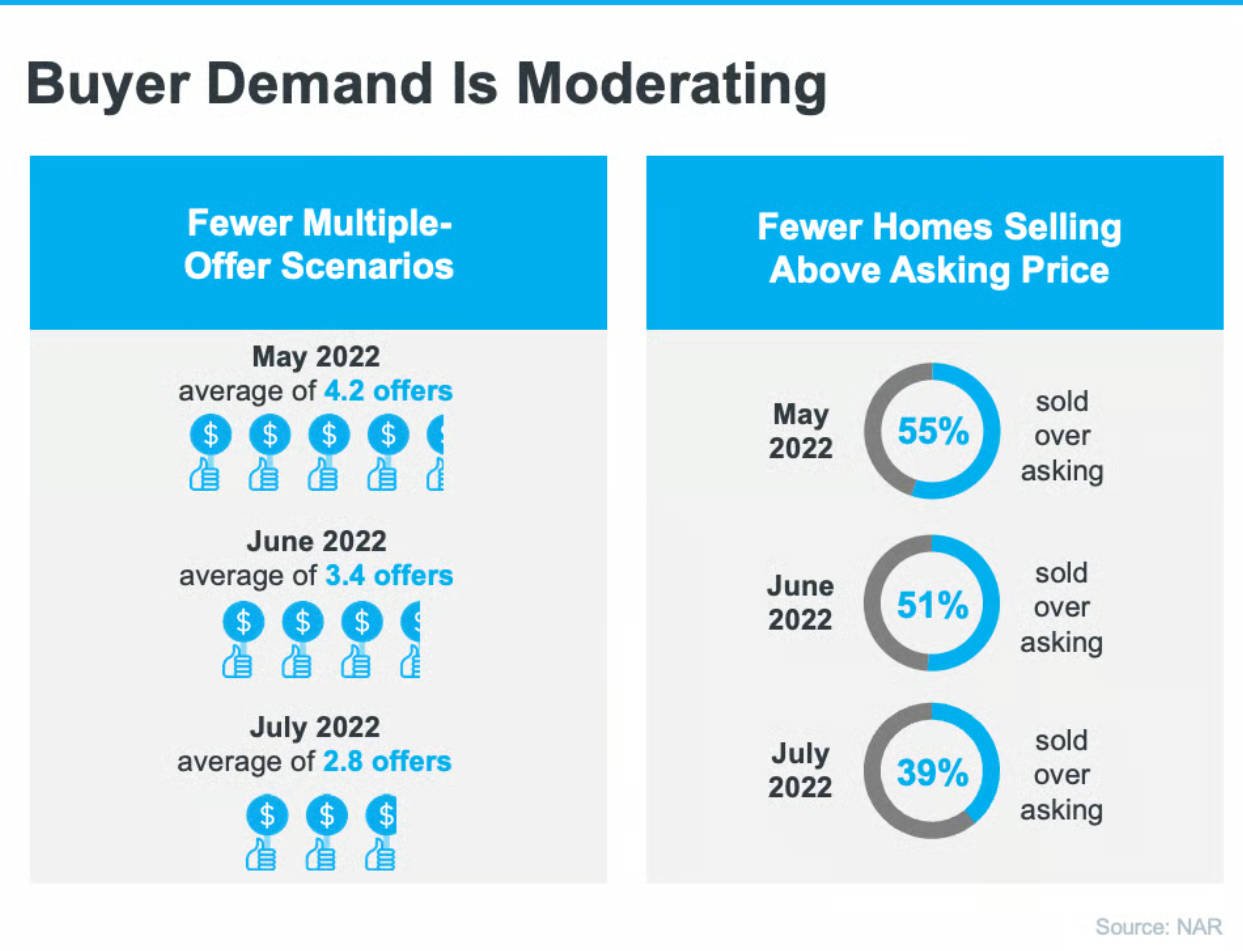 It’s true buyer demand has slowed over the past few months as higher mortgage rates made it more expensive to buy a home. The result is fewer bidding wars and less competition among buyers (see visual below):