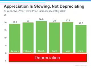 The graph below uses the latest data from CoreLogic to help tell the story of how home prices are decelerating, but not depreciating so far this year: