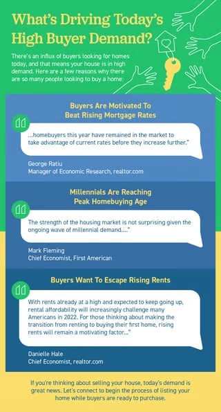 Buyers are motivated to beat rising mortgage rates, and many want to escape rising rents. There’s also additional demand from millennials who are reaching peak homebuying age.