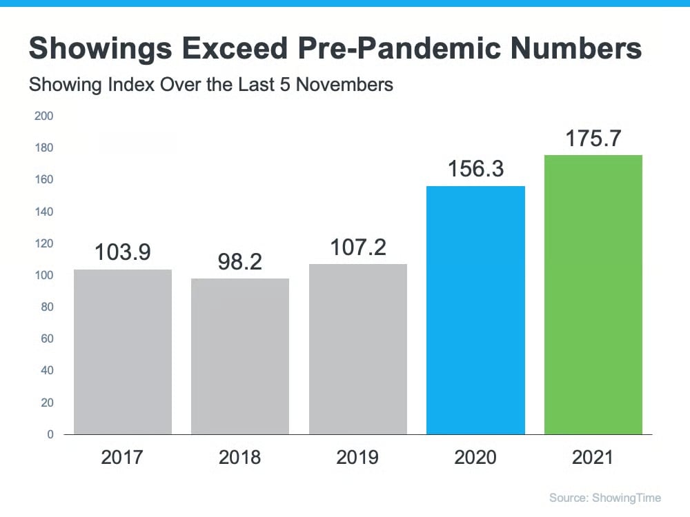 The latest index, which covers November showings, reveals that buyers are still very active in the market. Comparing this November’s numbers to previous years, this graph shows that the index is higher than last year and much higher than the three years prior to the pandemic. Clearly, there’s an influx of buyers searching for your home.