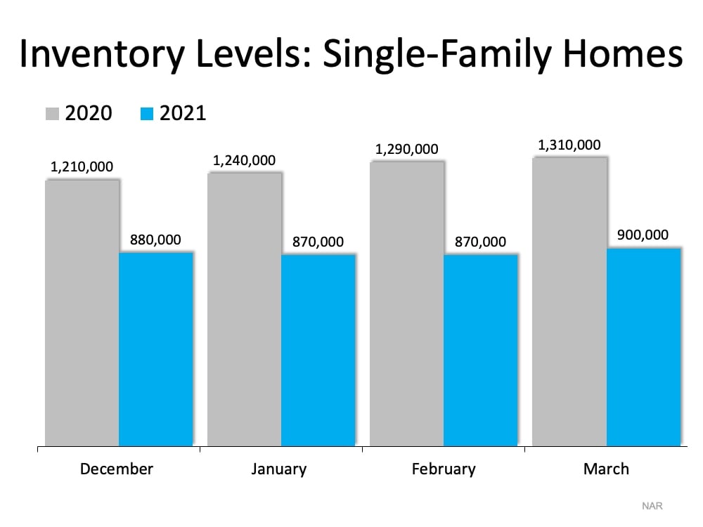 According to the National Association of Realtors® (NAR), today’s housing inventory sits at an incredibly low 2.1-month supply, far below the 6-month mark for a neutral market. Inventory of single-family homes a year ago was already very low, and as you can see in the graph below, this year’s levels are even lower: